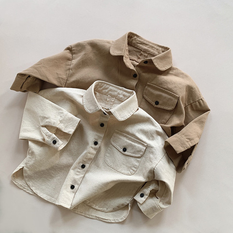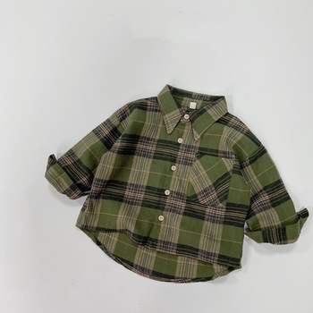 Primavera otoño niños Unisex Retro camisa a cuadros bolsillo detalle sobrecamisa Vintage Chic prendas de vestir exteriores camisa de bebé