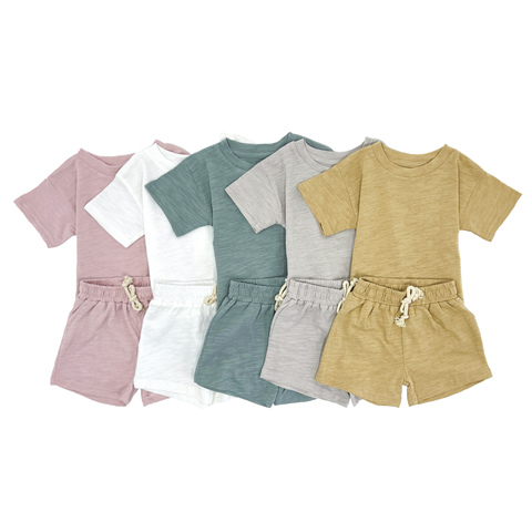 Verano infantil Toddle 100% algodón orgánico conjunto de ropa de manga corta conjunto de ropa de bebé