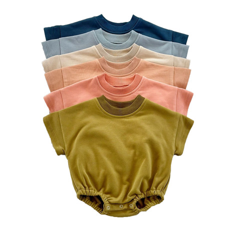 Verano recién nacido Niño niña Casual sólido manga corta suelta suave francés Terry algodón mamelucos bebé mono