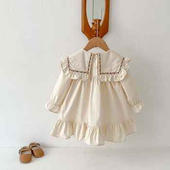 Vestido de primavera para niñas pequeñas, cuello extragrande, bordado Floral, Princesa, dobladillo con volantes, manga larga, vestido de algodón para bebé